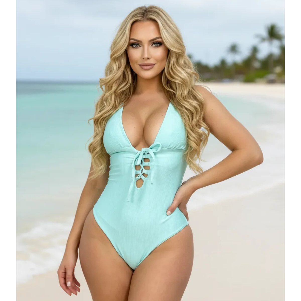 Maio Feminino Exclusivo Decote Trançado Tecido Canelado Luxo Verde Agua